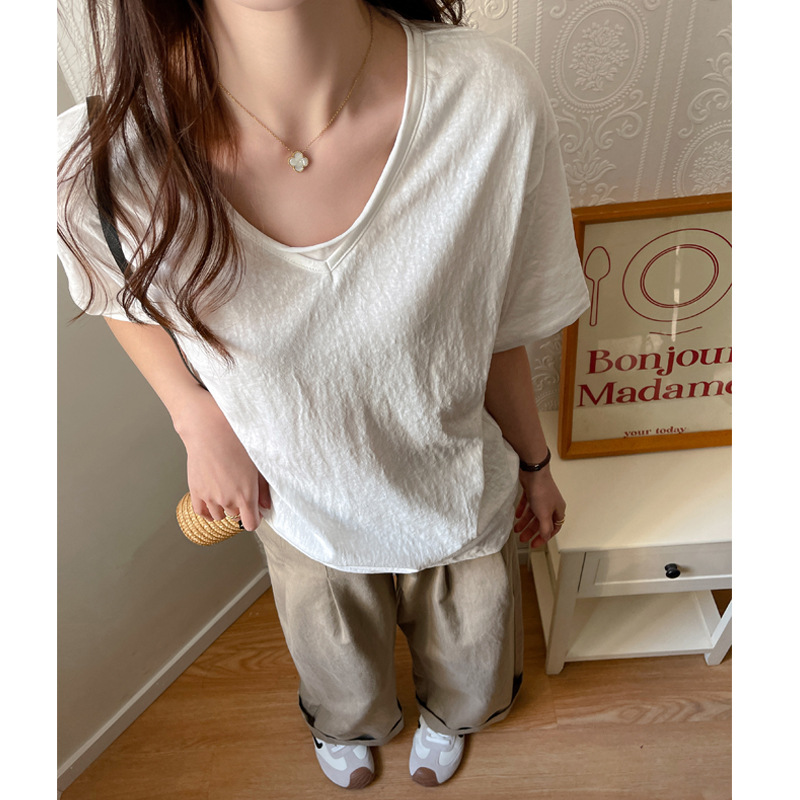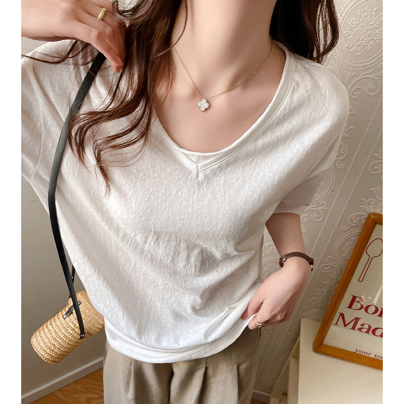 v领雪花棉短袖t恤女韩系百搭基础款宽松显瘦辣妹内搭白色打底