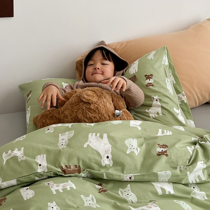 A类狗狗超柔天竺棉四件套全棉纯棉裸睡儿童针织棉被套床单床品1.8