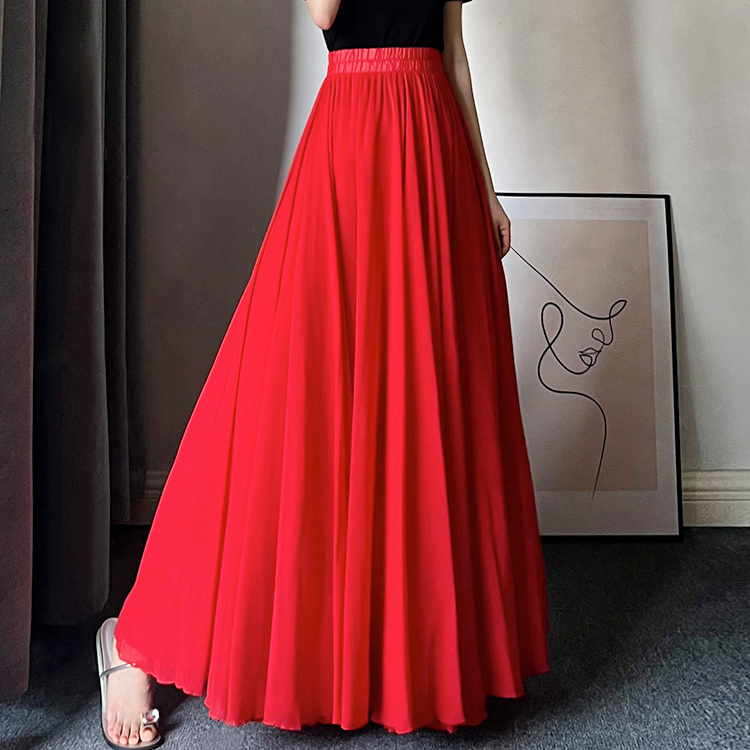 新疆舞雪纺半身大摆裙练习裙维族舞蹈表演长裙中国风舞台演出裙女