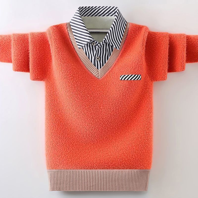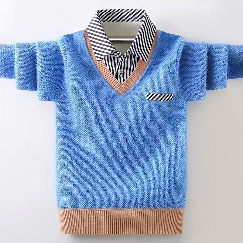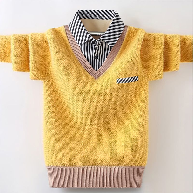 童装男童毛衣一体新款两件秋冬中大童保暖加绒加厚儿童针织衫男孩