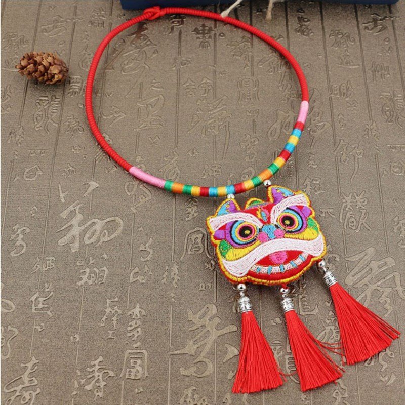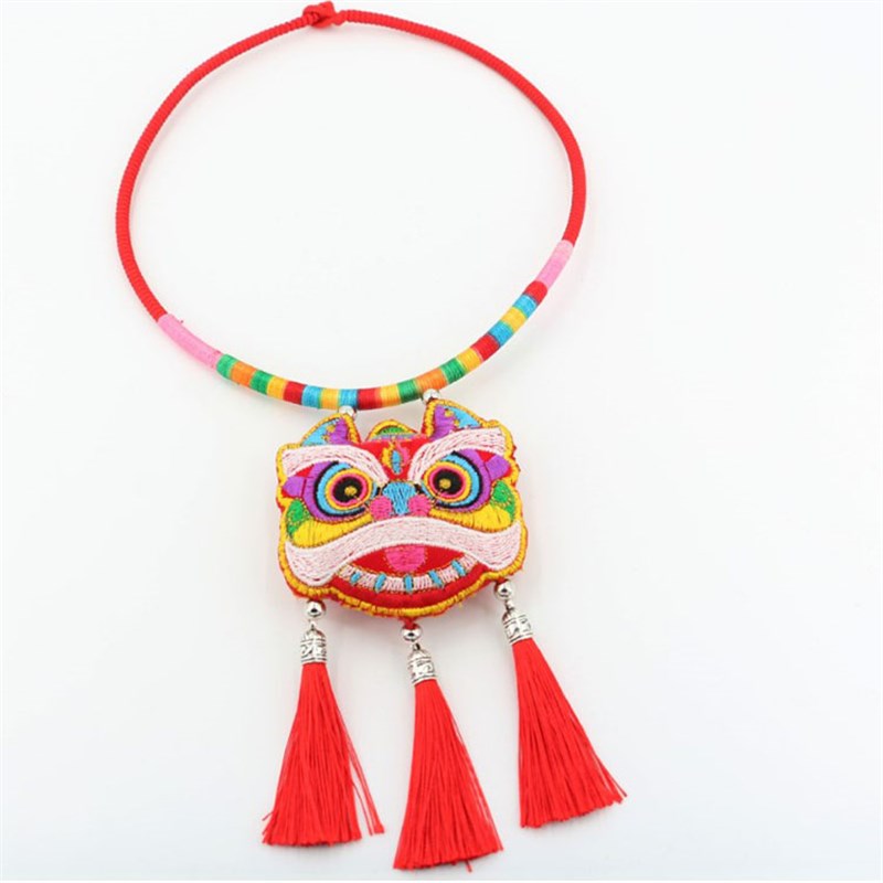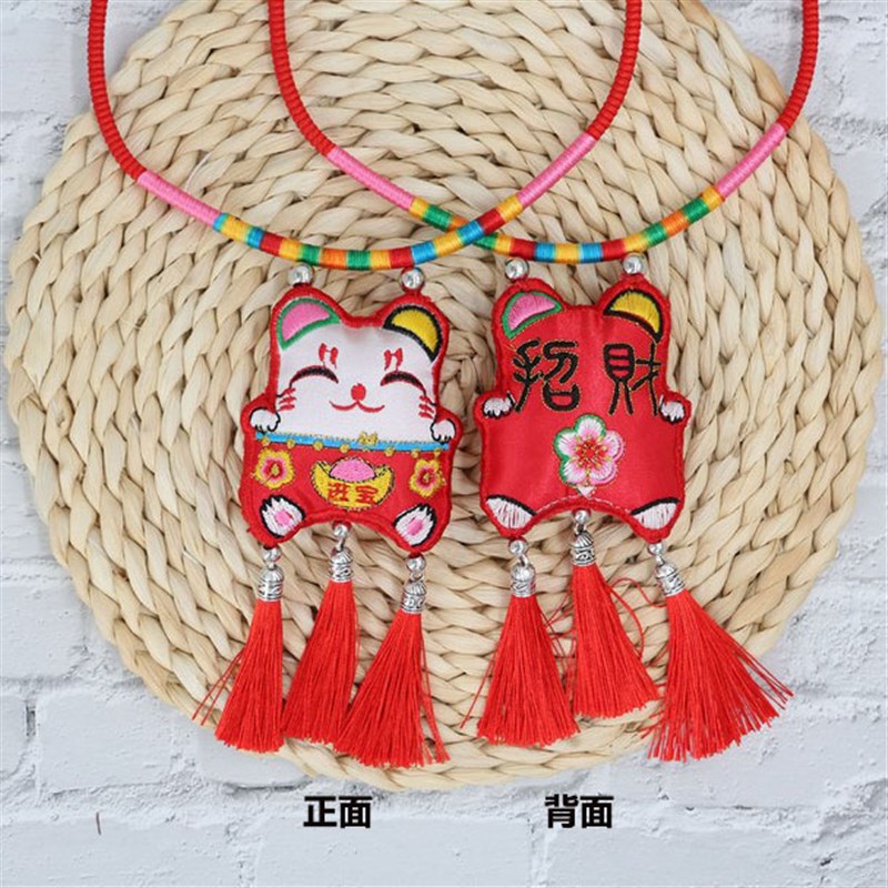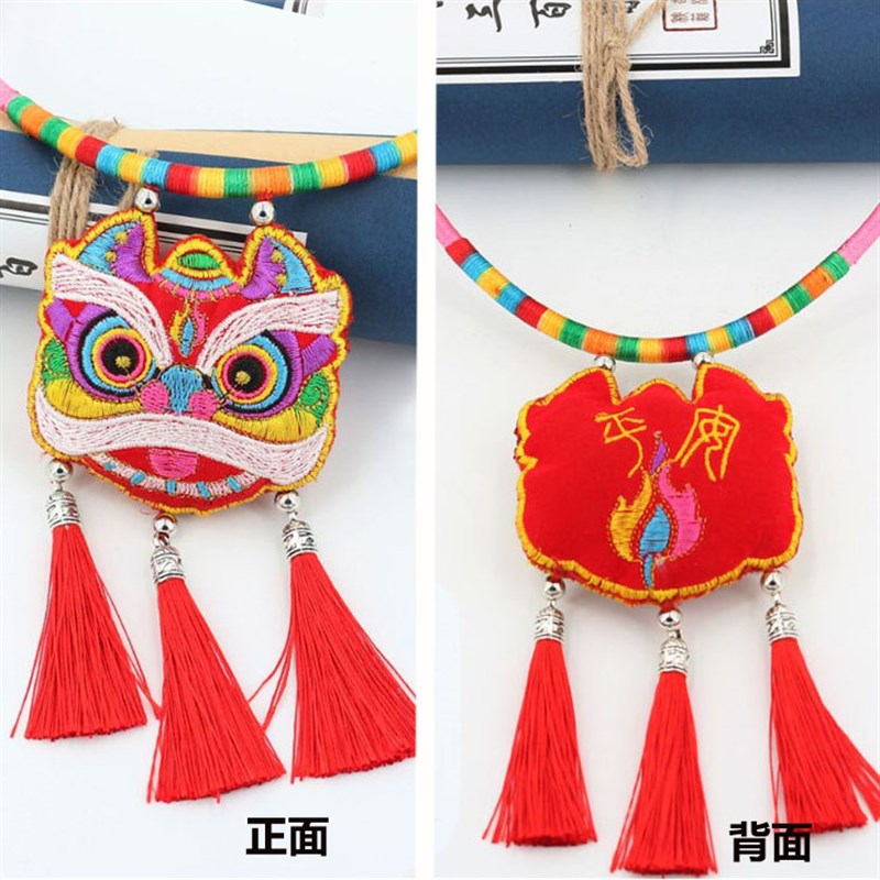极速抓周醒狮宝宝唐装配饰项圈双面刺绣手工缝制狮V子招财猫民俗