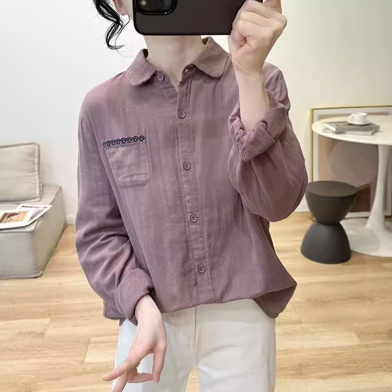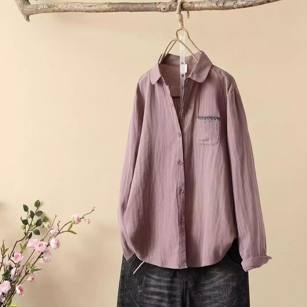 捡漏~专柜撤柜纯棉棉麻长袖衬衫女文艺复古百搭宽松休闲打底上衣