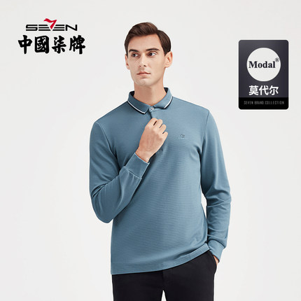 清仓莫代尔长袖polo弹力柒牌