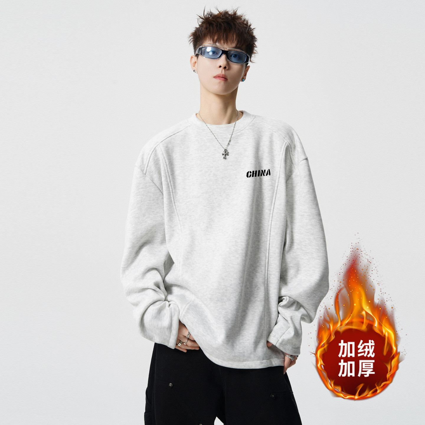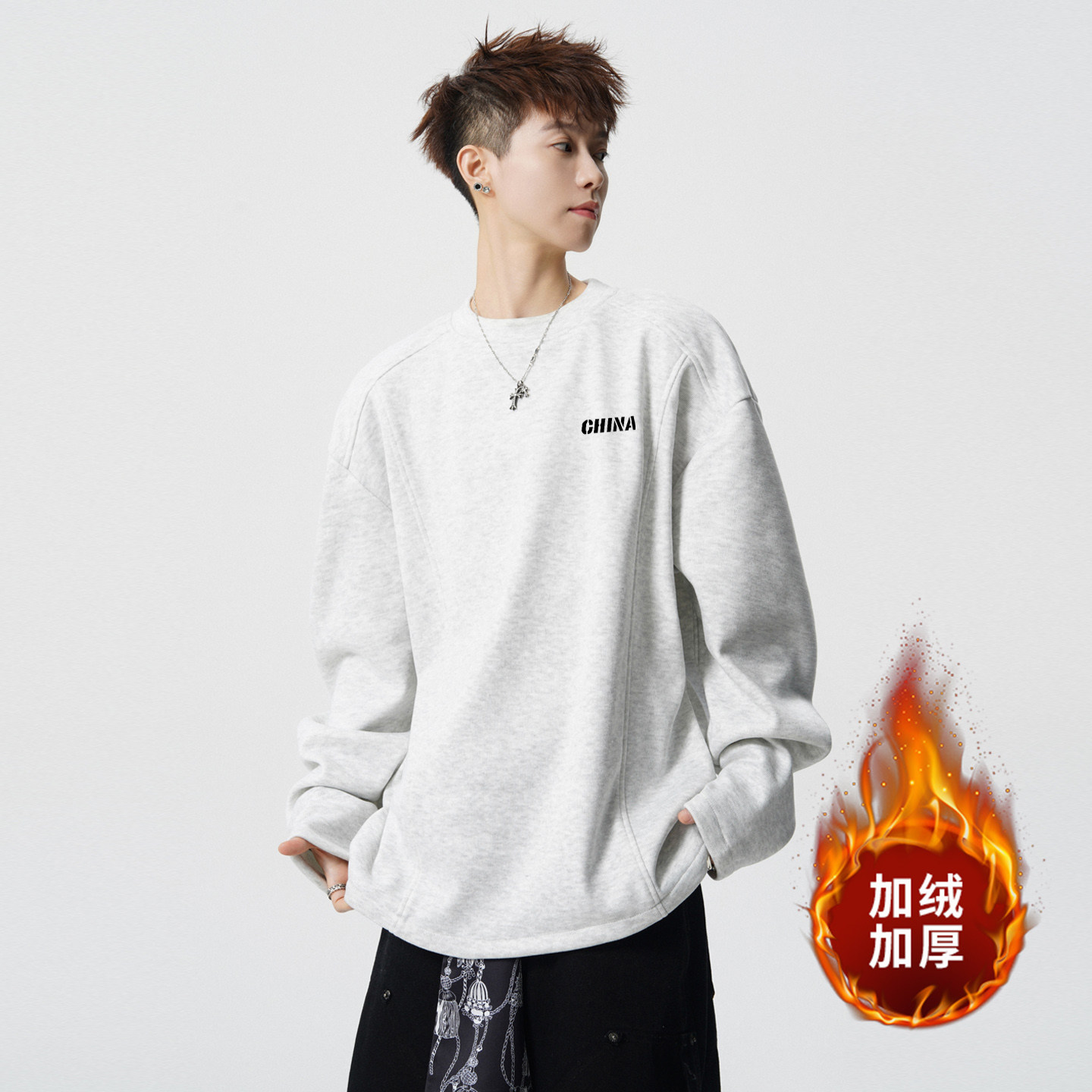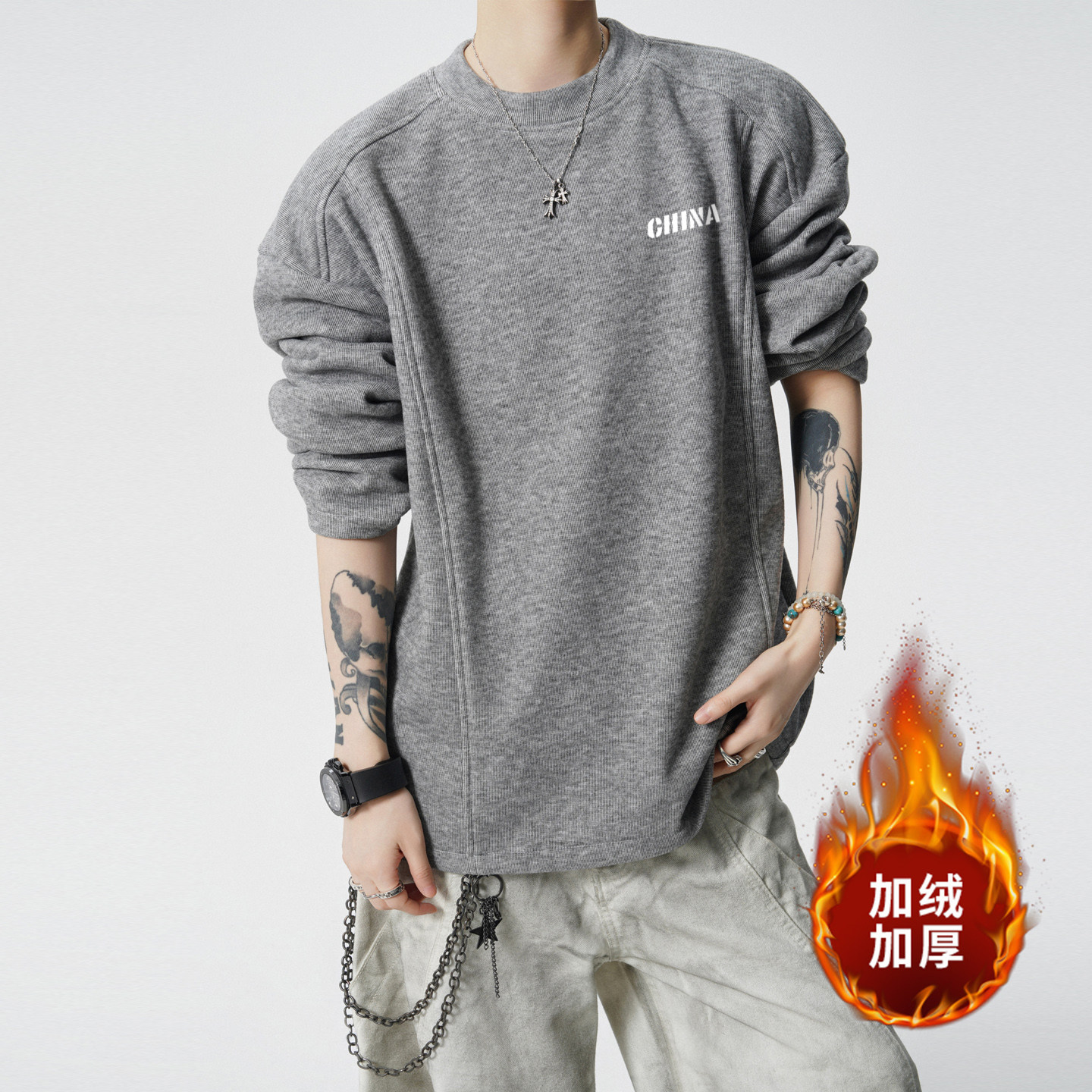 2025新款加绒男士德绒打底衫男生青少年长袖t恤内搭上衣男款冬季