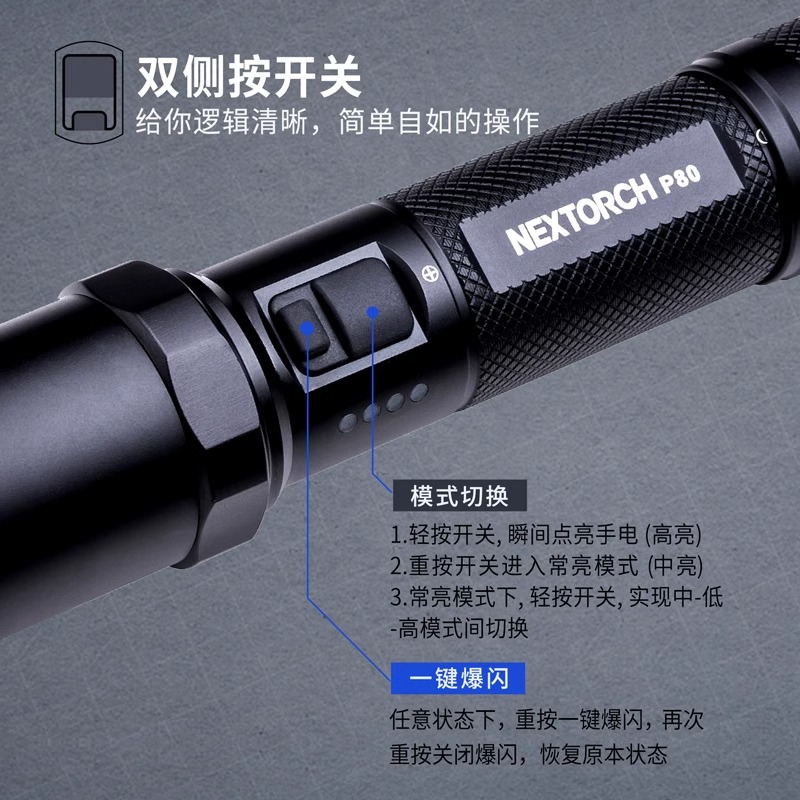Nextorch纳丽德P81/P80/P83/P84强光户外手电筒充电爆闪勤务巡逻
