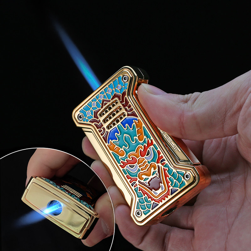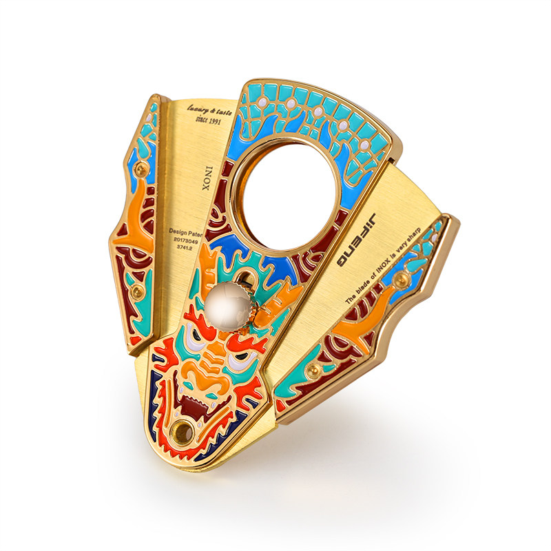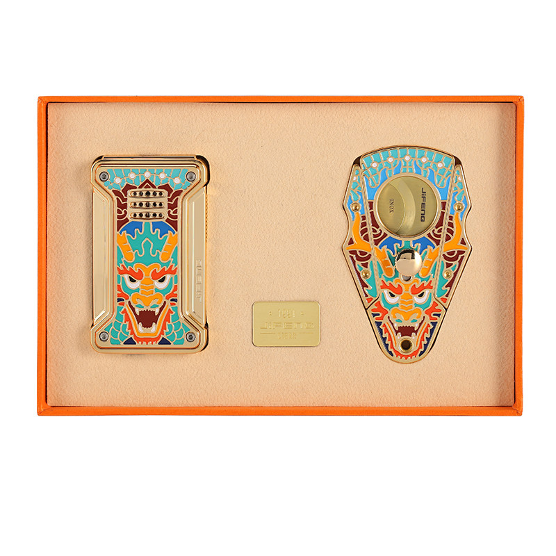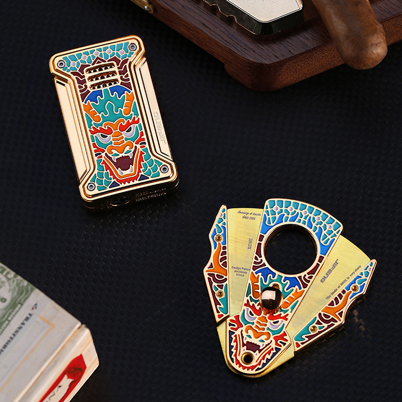JIFENG季风雪茄剪打火机龙纹点漆特钢刀刃锋利便携大口径礼盒套装