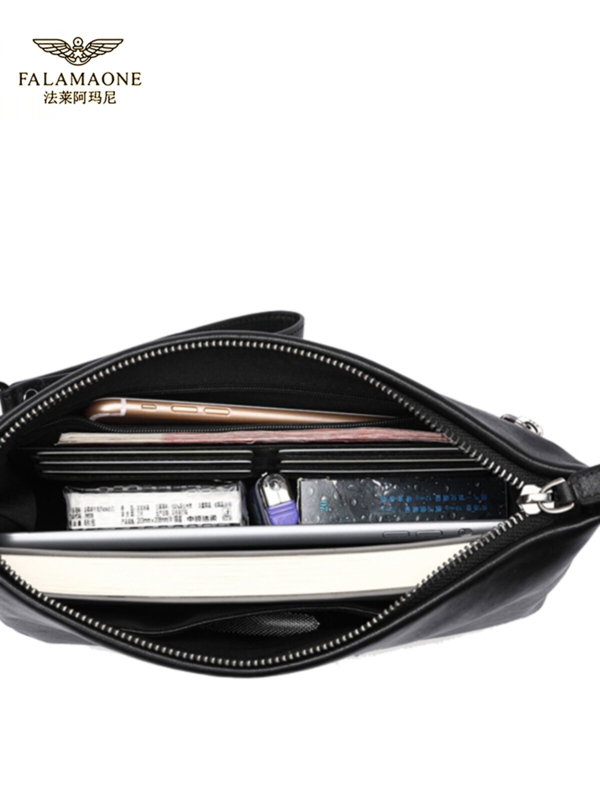 正品手拿包法莱阿玛尼真皮