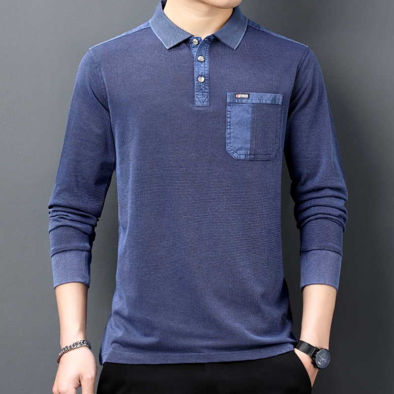 利郎长袖针织Polo衫男时尚复古有口袋长袖T恤翻领春秋季棉打底衫