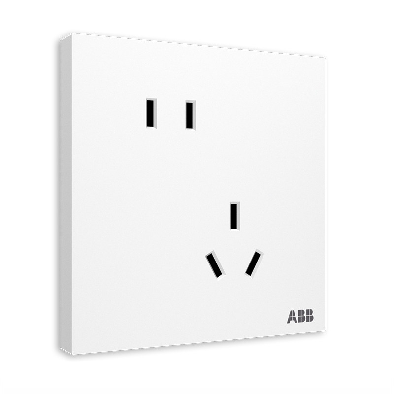 ABB开关插座 盈致白色86型10A错位斜五孔插座 单控双控开关面板