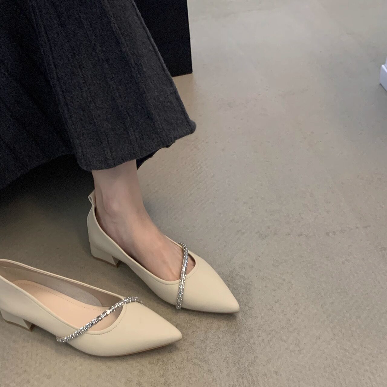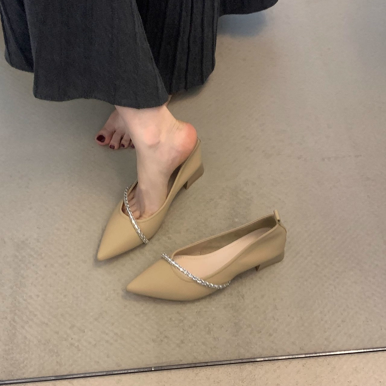法式低跟浅口尖头单鞋女2026新款夏季仙女配裙子温柔玛丽珍小皮鞋