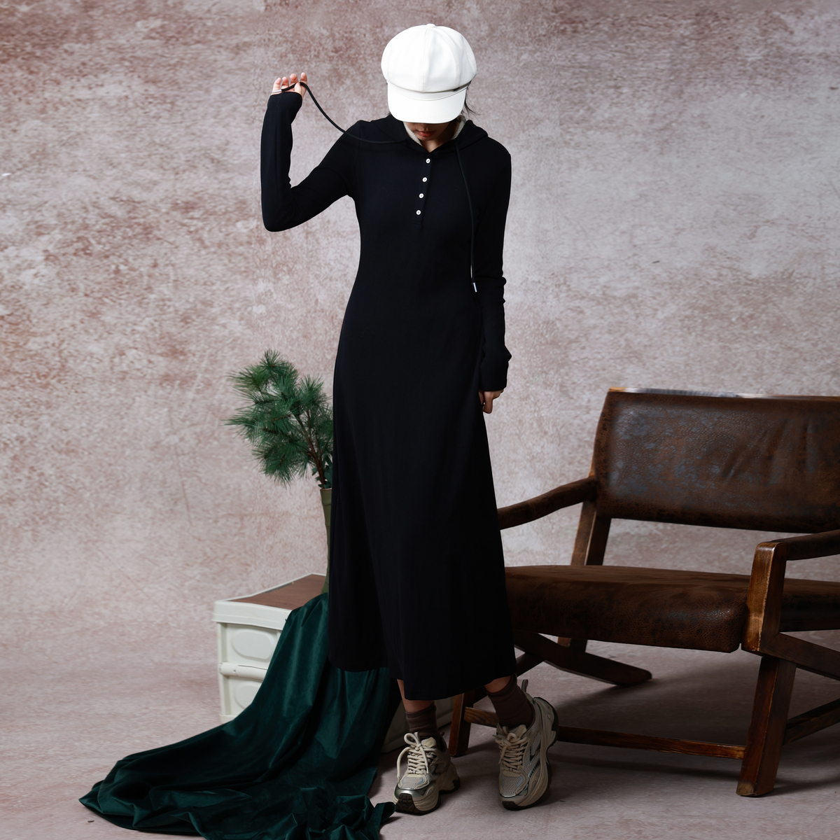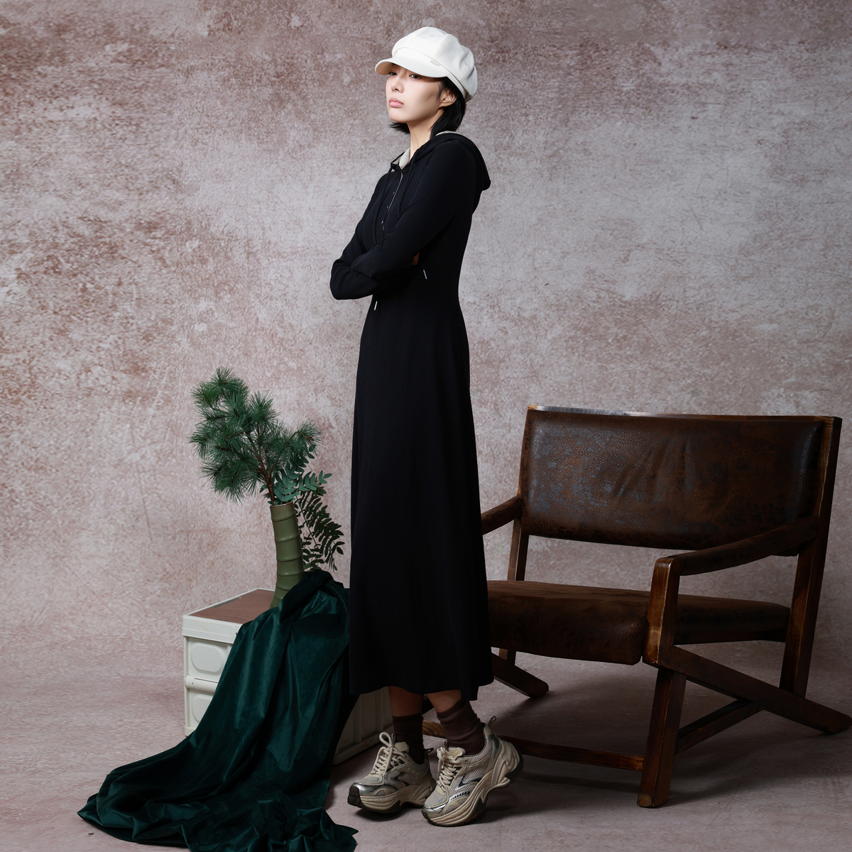 西町村屋修身连帽设计连衣裙女装秋冬新款气质长款裙子XH9D10310