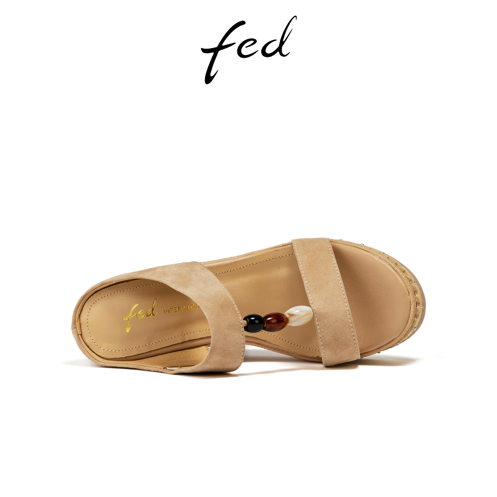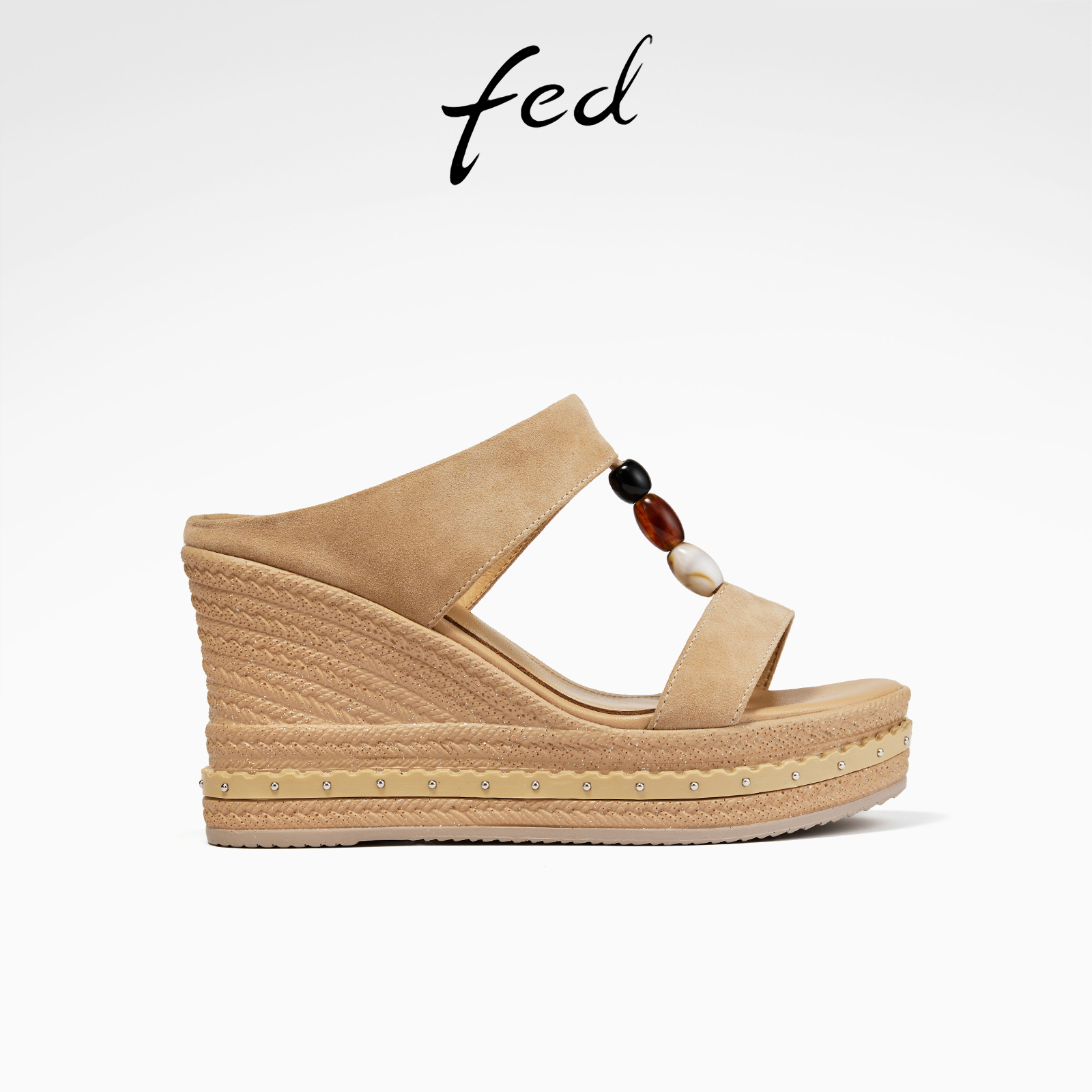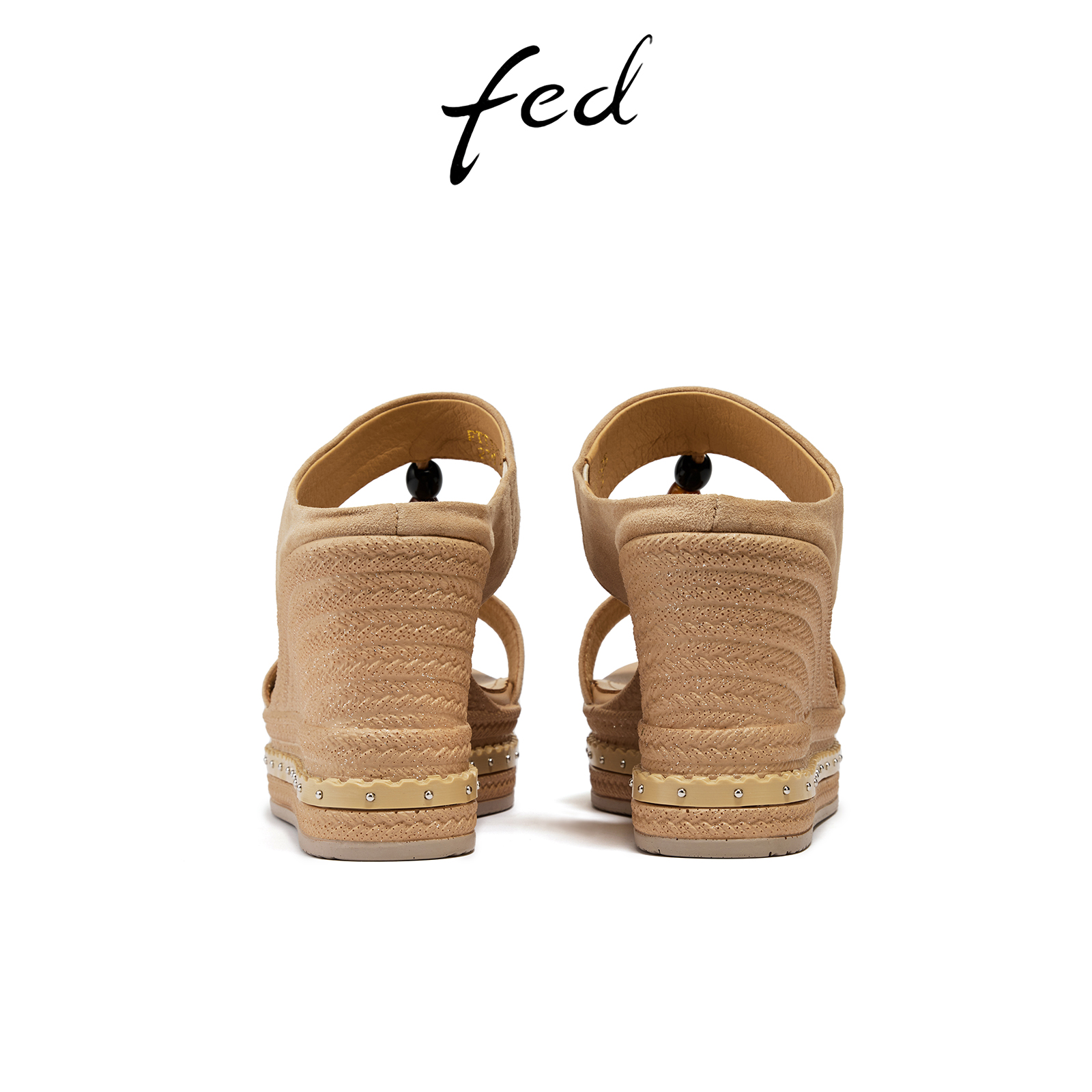 fed坡跟凉拖女夏季新款女鞋增高一字拖外穿拖鞋女款S0602-ZFA323