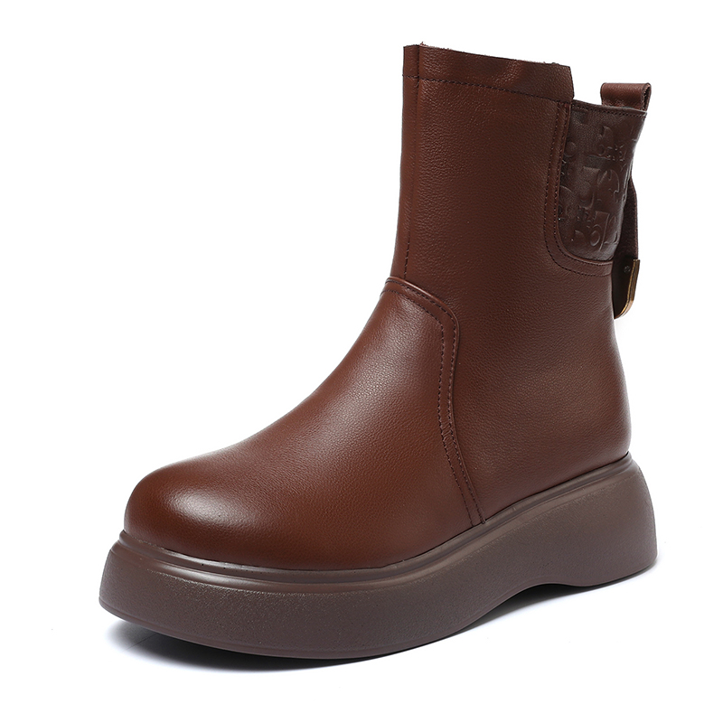 羊毛中筒靴女皮毛一体雪地靴真皮妈妈棉鞋加绒加厚保暖冬季棉靴子