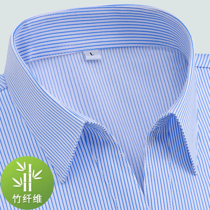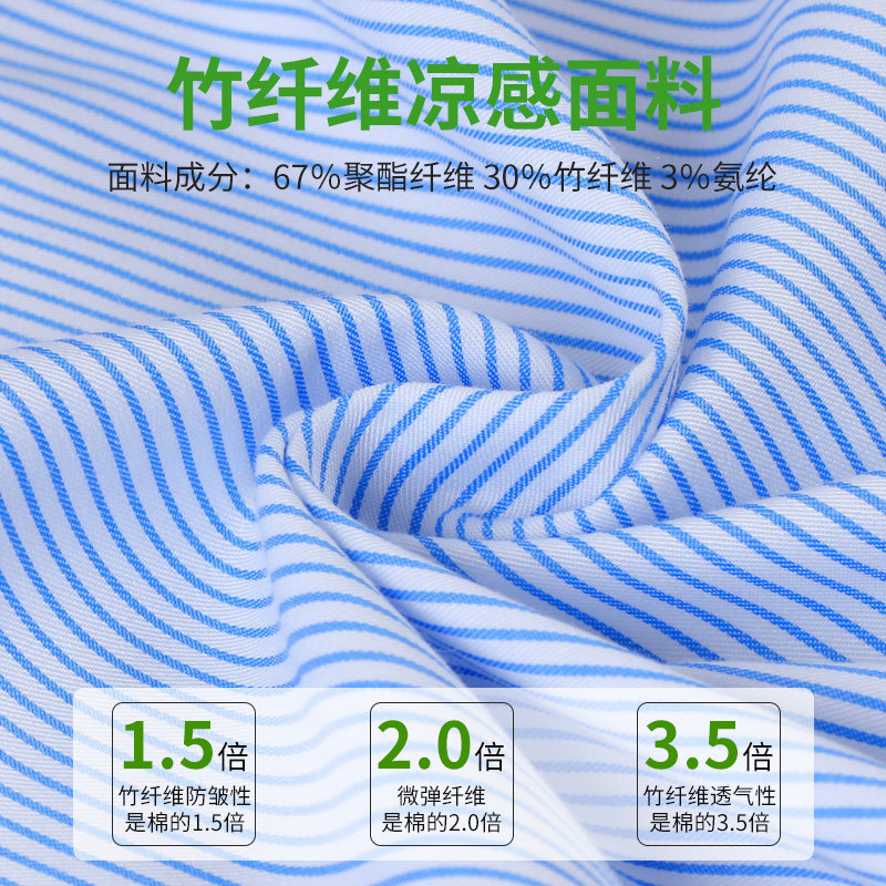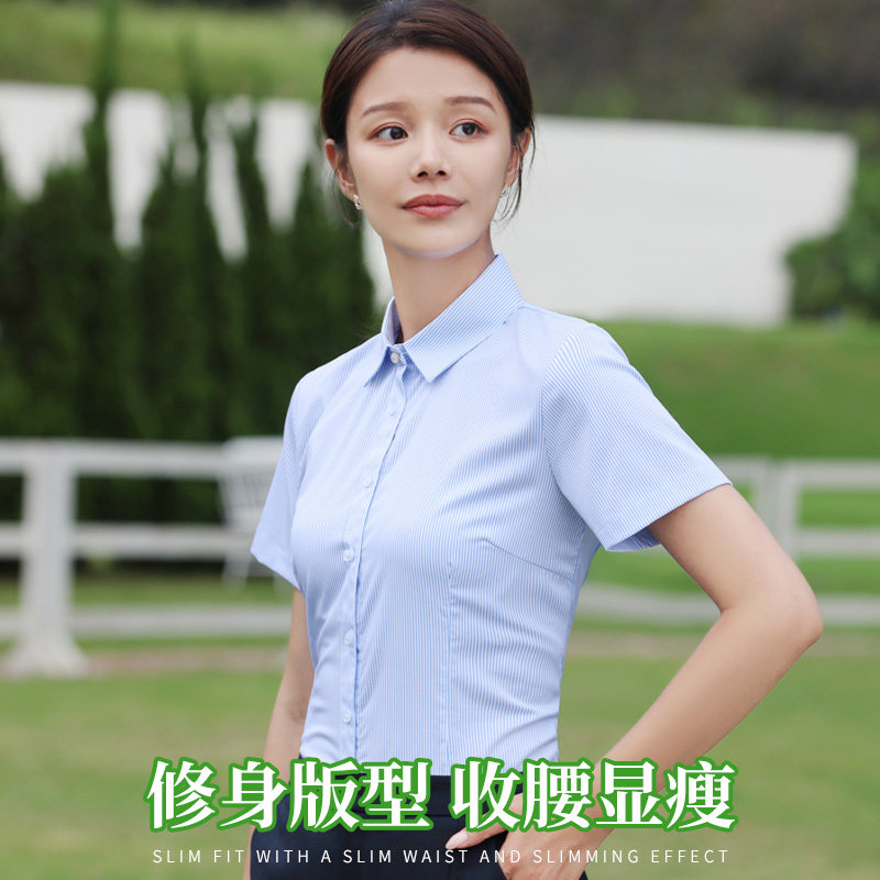 粗条纹短袖衬衫女竹纤维夏季新款免烫弹力商务正装职业面试服衬衣