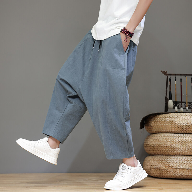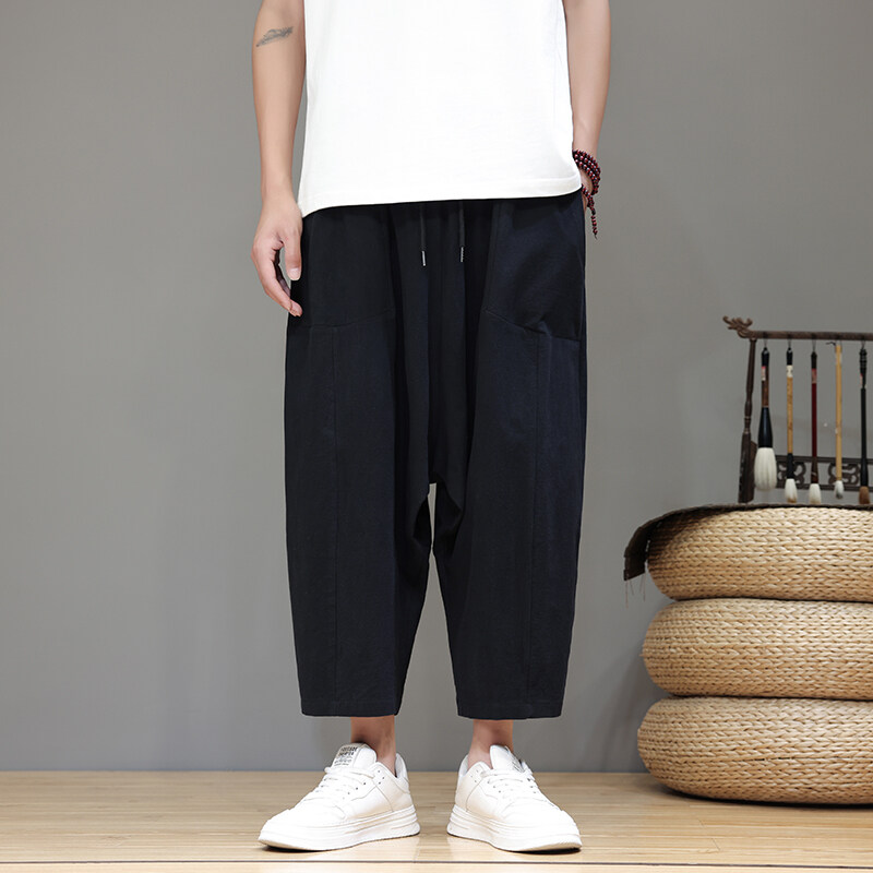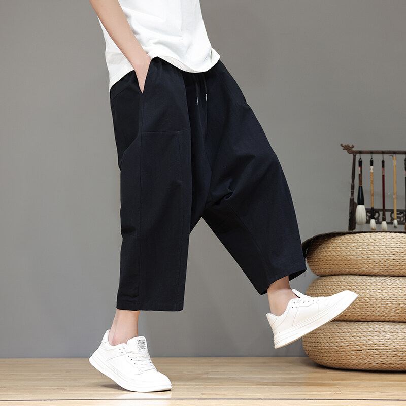 潮男士夏季大码阔腿裤青少年纯色低档裤薄款七分裤运动短裤垮裤