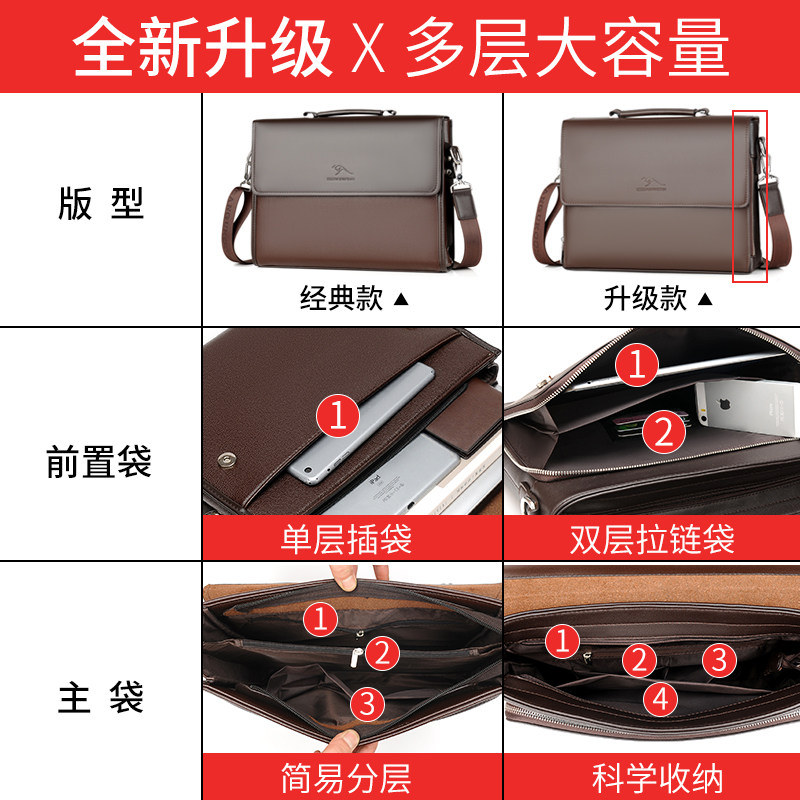 宝谛袋鼠男包单肩包真皮斜挎包手提皮包挎包男商务公文包休闲背包