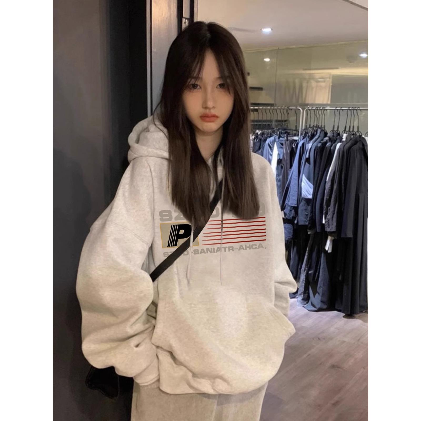 外贸爆款仿棉华棉复合-薄款310g加绒400g 连帽卫衣女秋冬