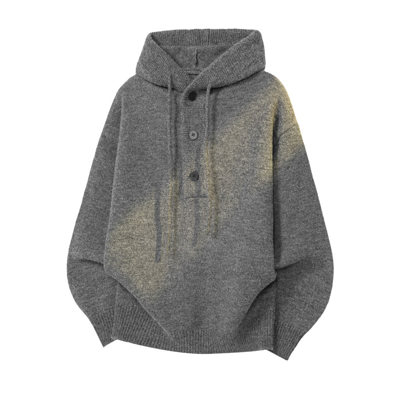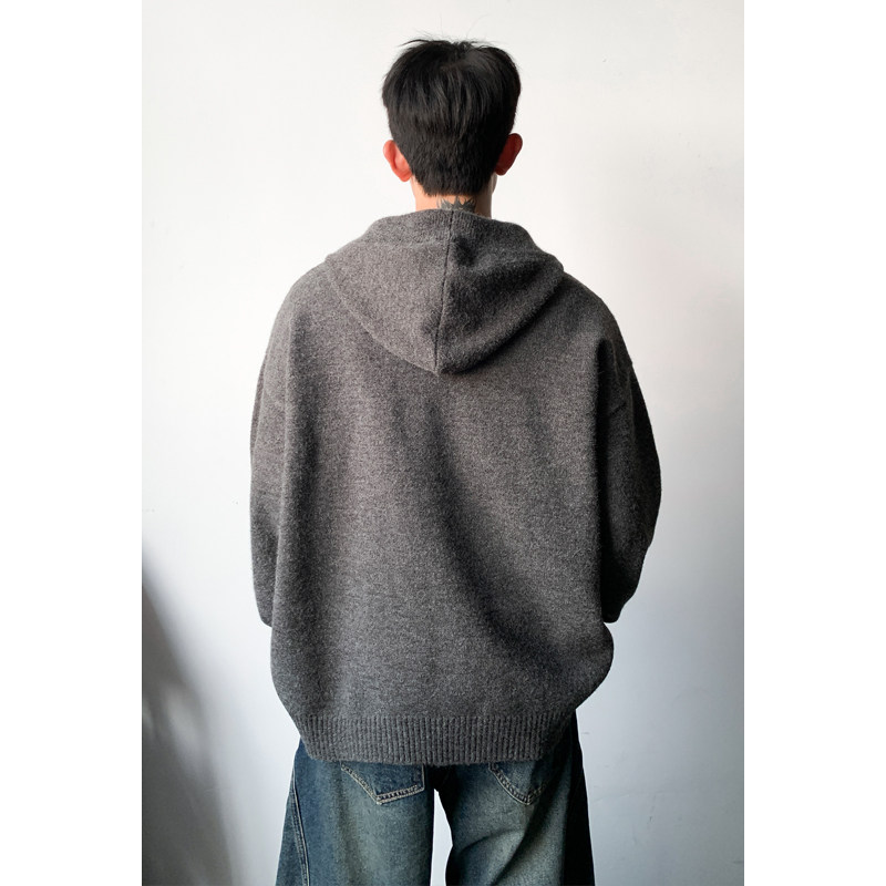 美式复古高街连帽针织衫男款冬季潮牌设计感毛衣情侣宽松慵懒外套