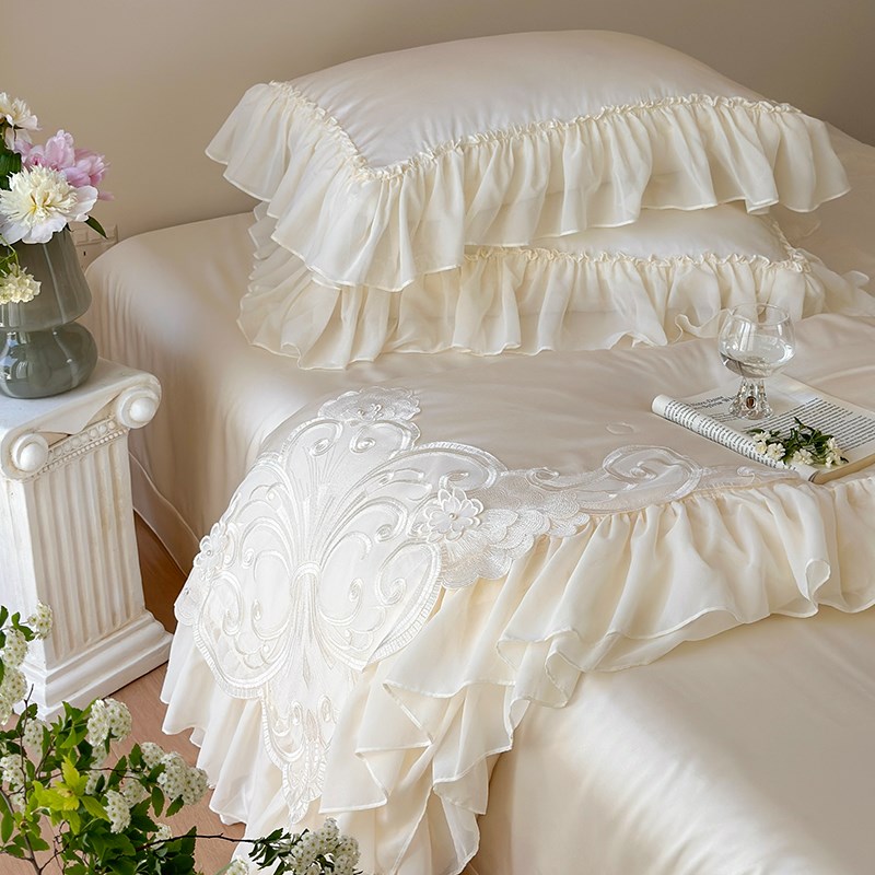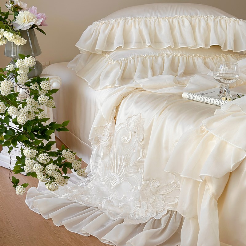 法式蕾丝100支天丝夏凉被四件套莱赛尔空调被夏被可机洗夏季凉爽