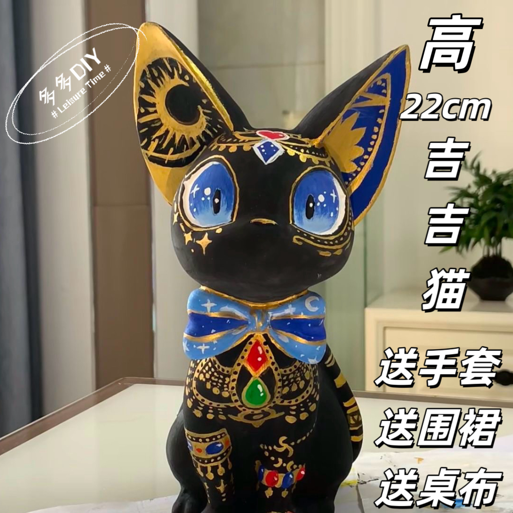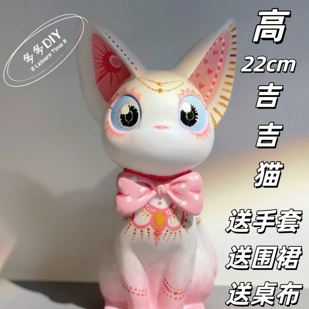 网红吉吉猫石膏娃娃大号彩绘儿童涂色手工diy存钱罐摆件涂鸦玩具