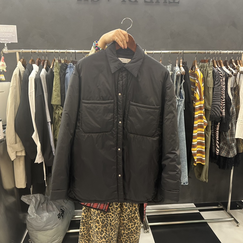 韩国代购女装2025秋款简约宽松翻领单排扣衬衫式棉服夹棉外套