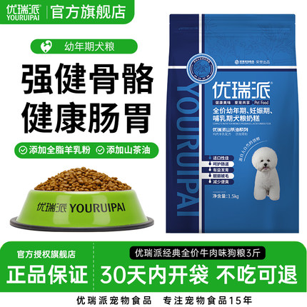 优瑞派奶糕狗粮1.5kg泰迪博美金毛拉布拉多哺乳犬通用型幼犬3斤装