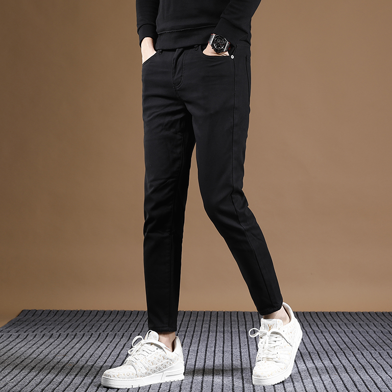 黑色裤子男冬季加绒加厚九分牛仔裤男弹力休闲裤潮流显瘦修身小脚