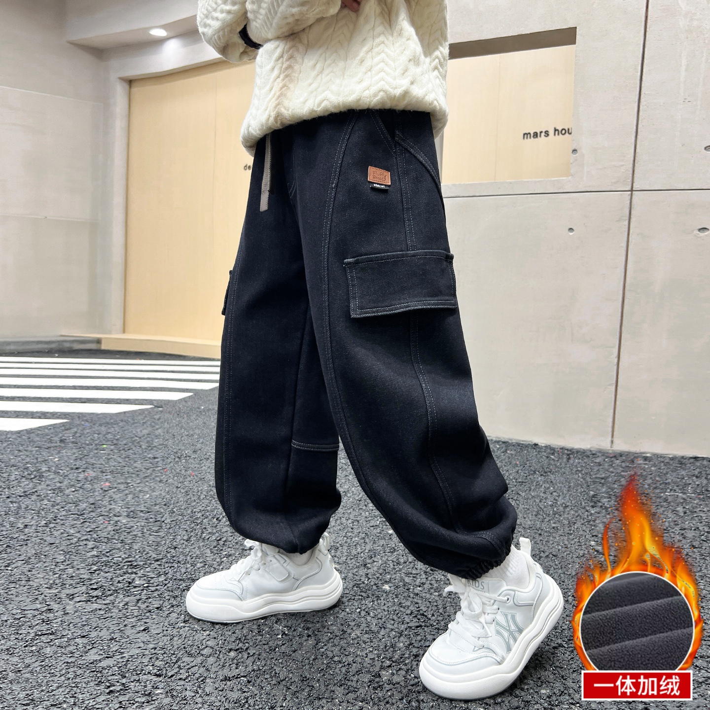 儿童装男童加绒裤子秋冬2025新款保暖男孩冬装牛仔裤中大童加厚潮