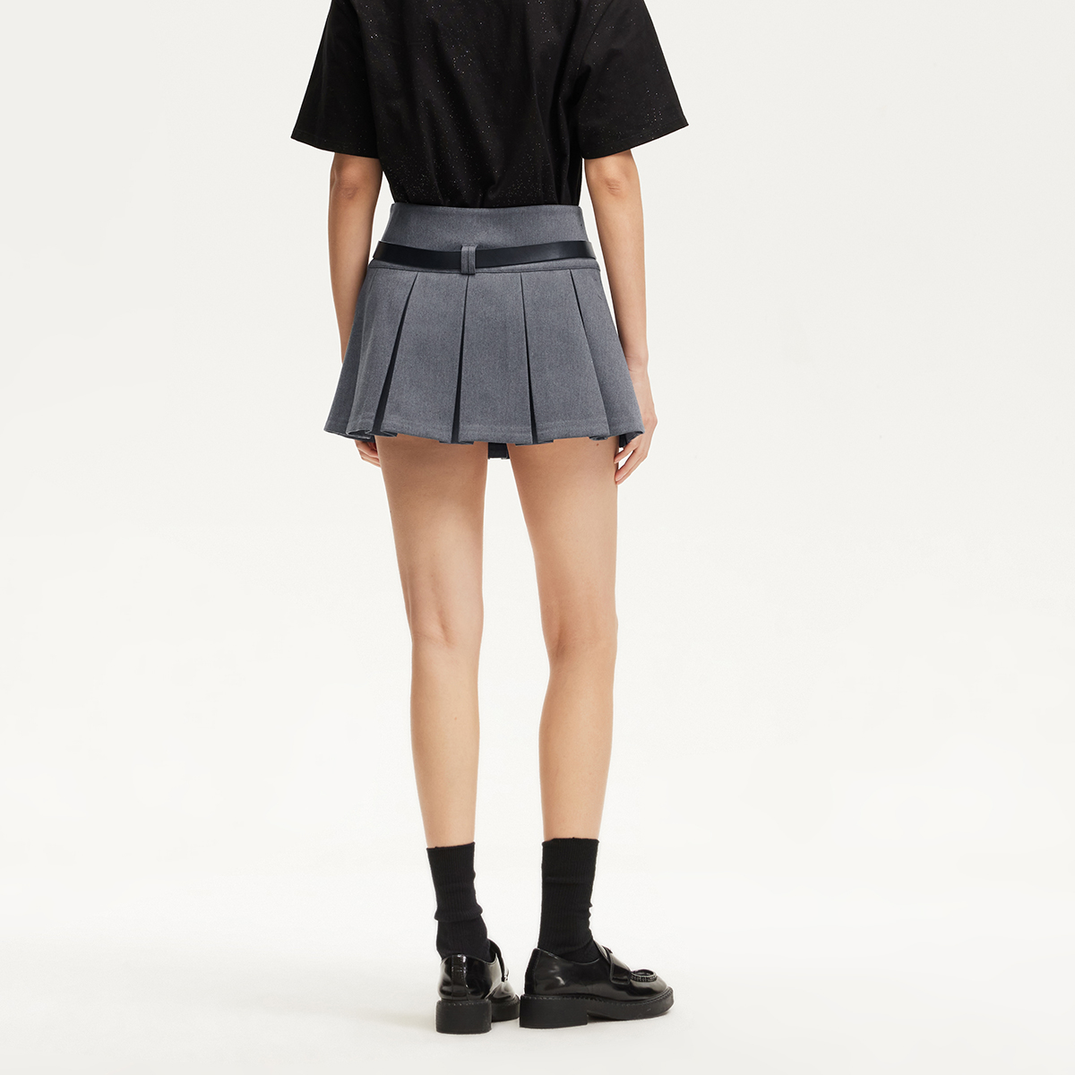 Vero Moda奥莱半身裙2025夏季新款腰带装饰超短百褶裙辣妹风裙子