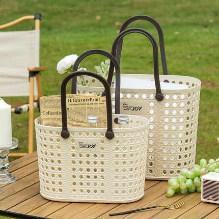 菜篮子手提篮塑料家用鸡蛋水果果篮大号买菜购物篮户外野餐收纳筐
