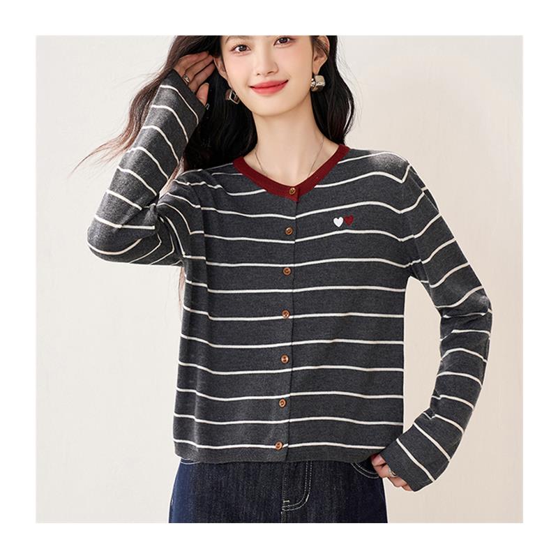 新品针织开衫外套薄款毛衣女2025新款早秋穿搭撞色条纹小外搭短款