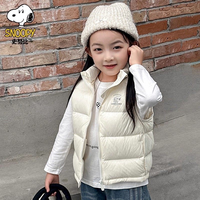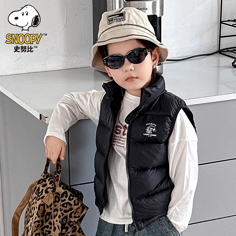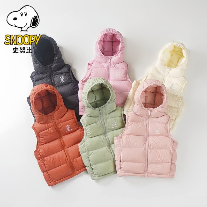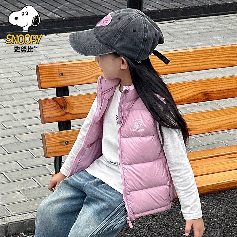 正品史努比秋冬羽绒马甲2025新款男女童连帽背心校服外套幼儿坎肩