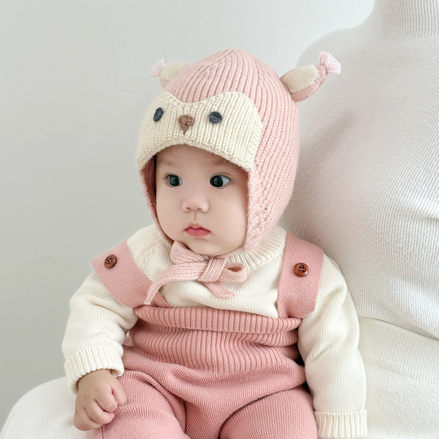 婴儿帽子秋冬季宝宝毛线帽针织帽男童冬季加厚女童护耳帽新款儿童