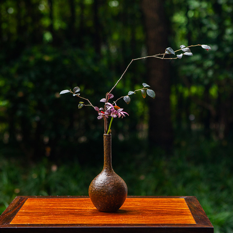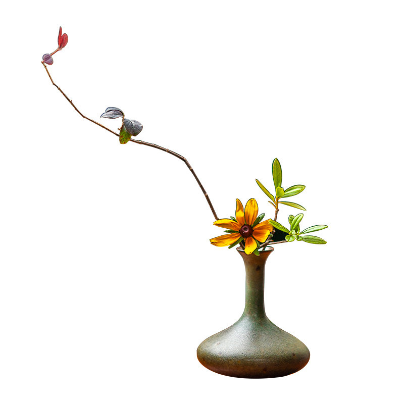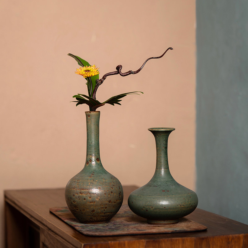 摆件小花瓶干花陶瓷插花器皿水培中式复古禅意日式花器剑山插花器