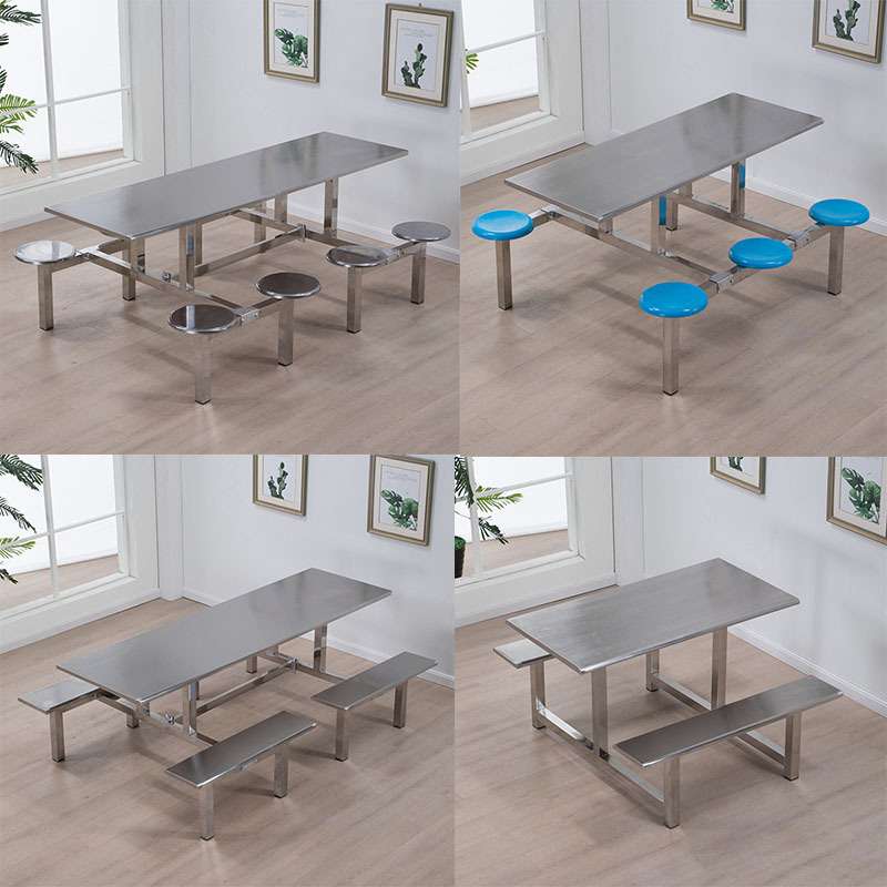 不锈钢快餐桌饭店学校餐厅员工食堂6人8人位玻璃钢连体餐桌椅组合