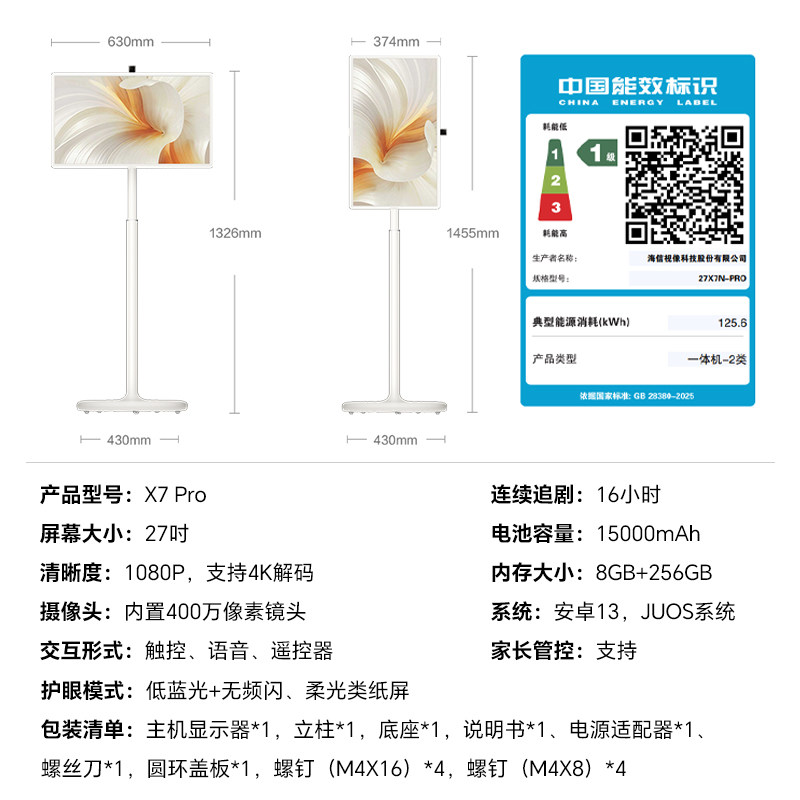 【新品上市】海信大白闺蜜机X7 Pro 16小时长续航 27英寸8核8+256GB大平板 AI全新升级 云雾白 国家补贴