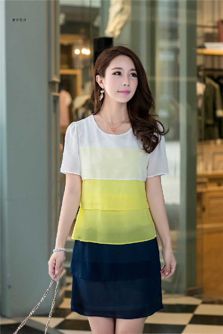 蛋糕裙连衣裙夏胖mm大码宽松雪纺裙遮肚子夏季裙短袖宽松腰中长裙