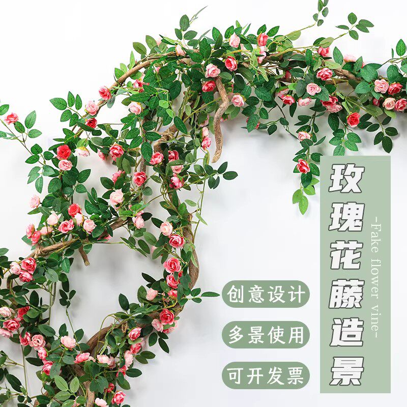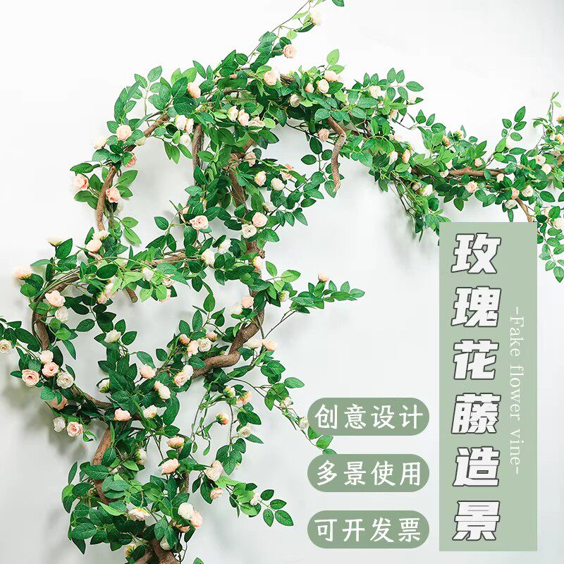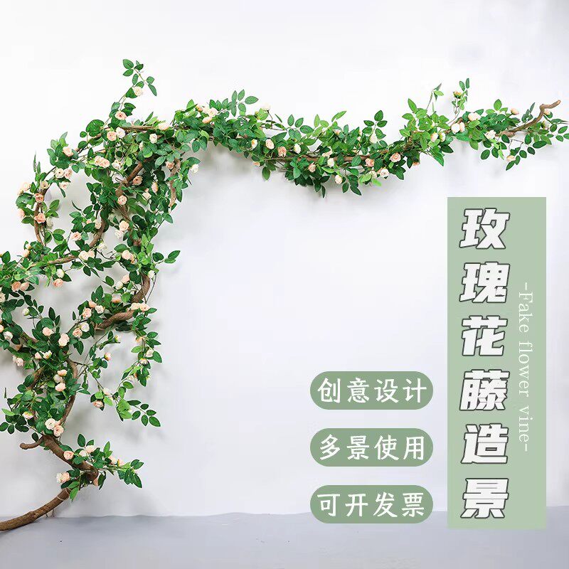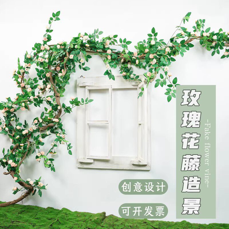 仿真花树藤玫瑰花藤森系微景网红店装饰墙面壁饰遮丑拍摄道具布置