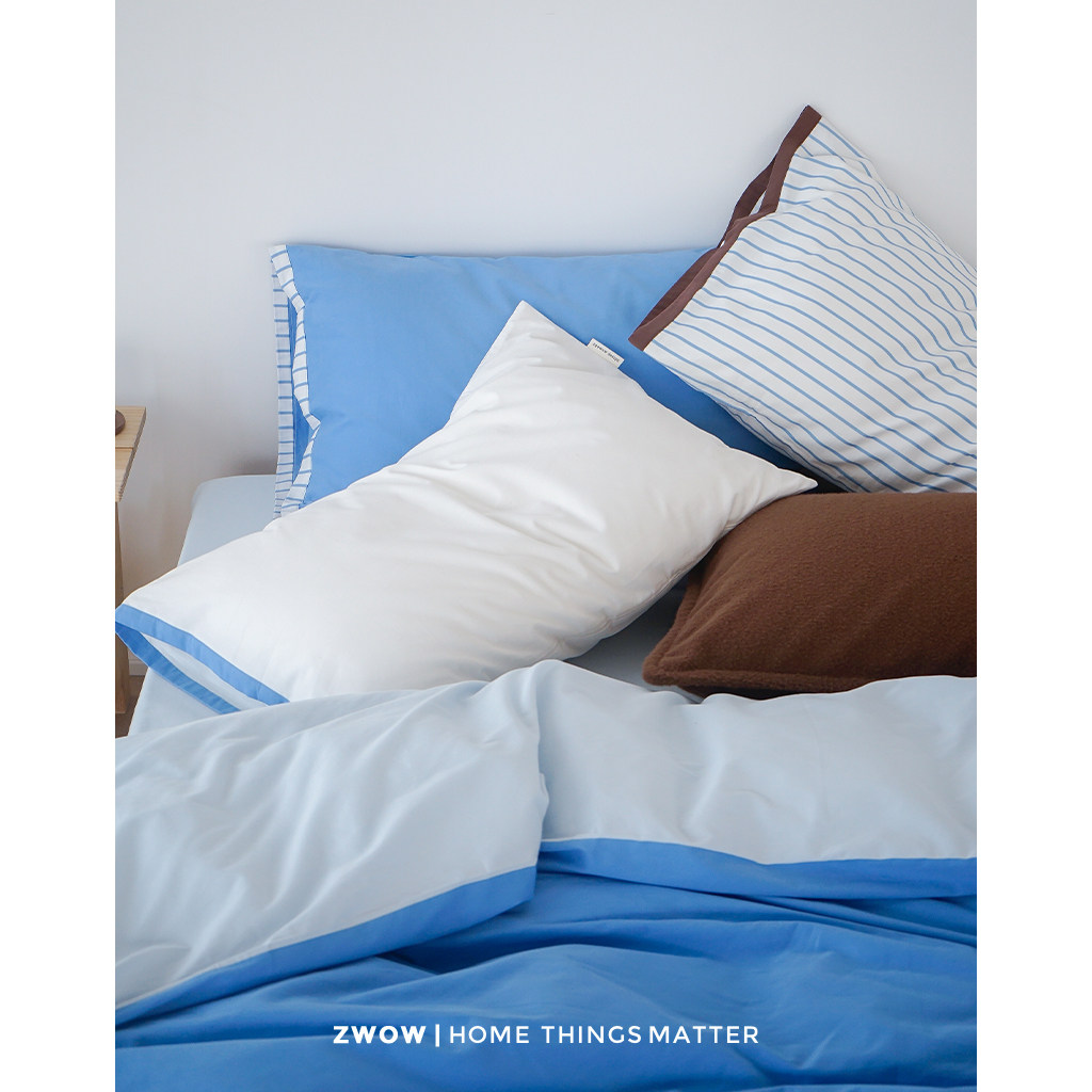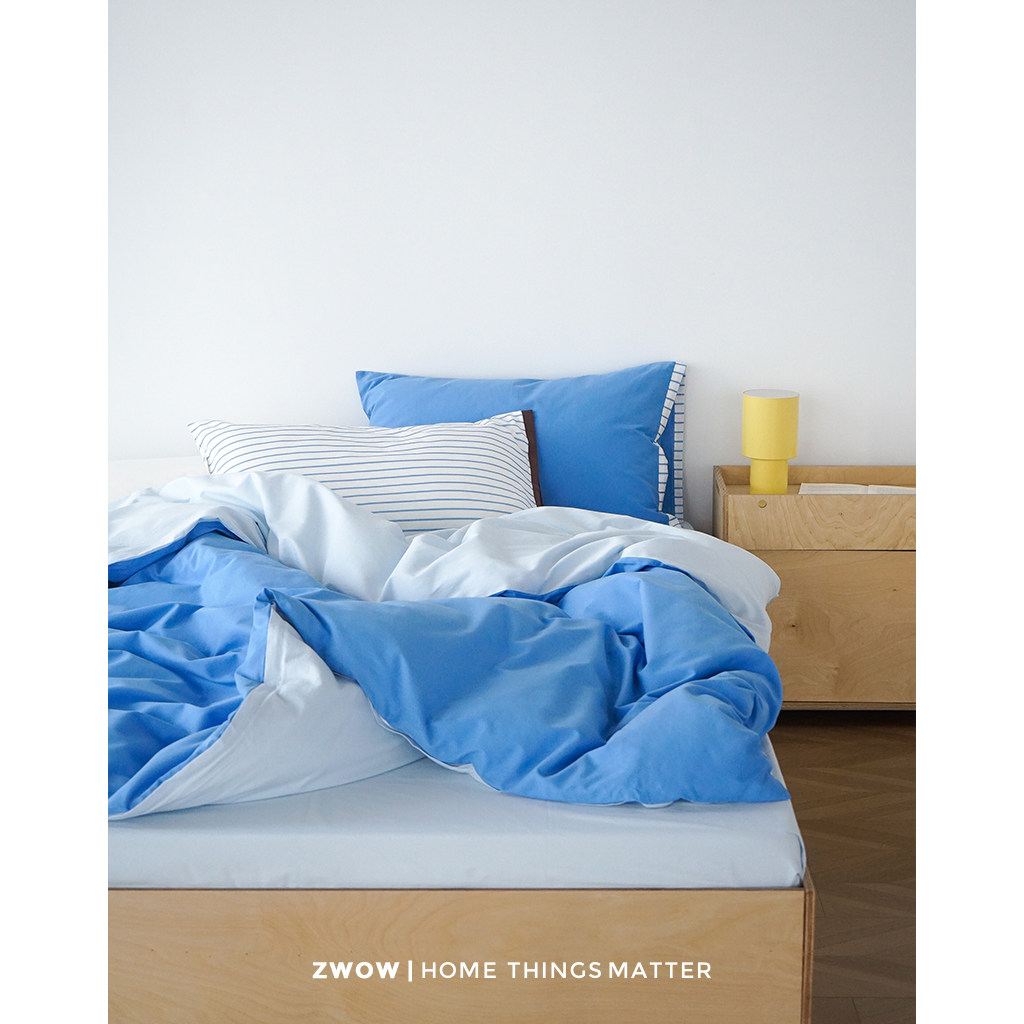 造卧zwow【蓝朋友】全棉长绒棉高支磨毛蓝色系撞色床单被套四件套