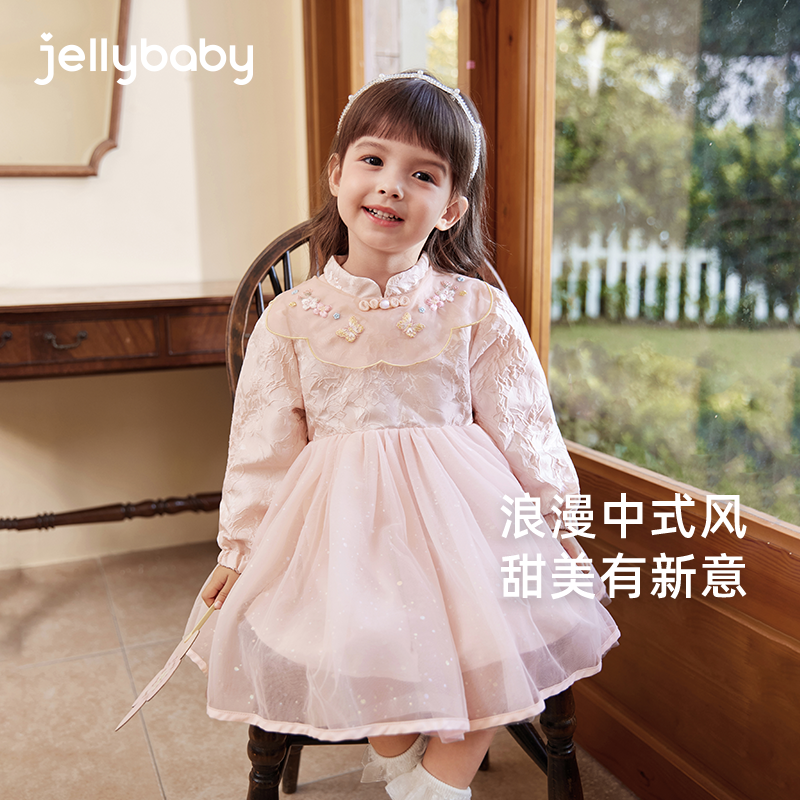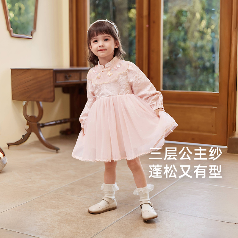 女童汉服春秋小童中式连衣裙提花云肩儿童国风公主裙宝宝周岁礼服