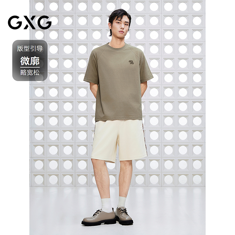 GXG男装 圆领T恤多色肌理拼接上衣凉感短袖针织 2025夏季新品