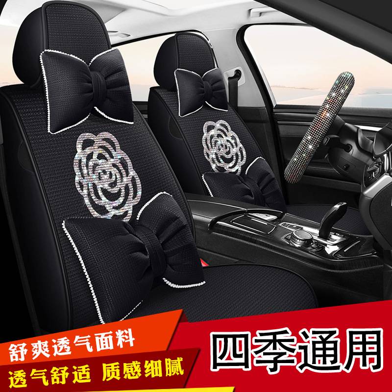 汽车坐垫四季通用全包车座套山茶花专用座垫夏季棉亚麻布艺座椅套