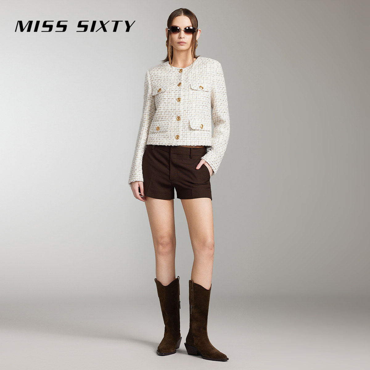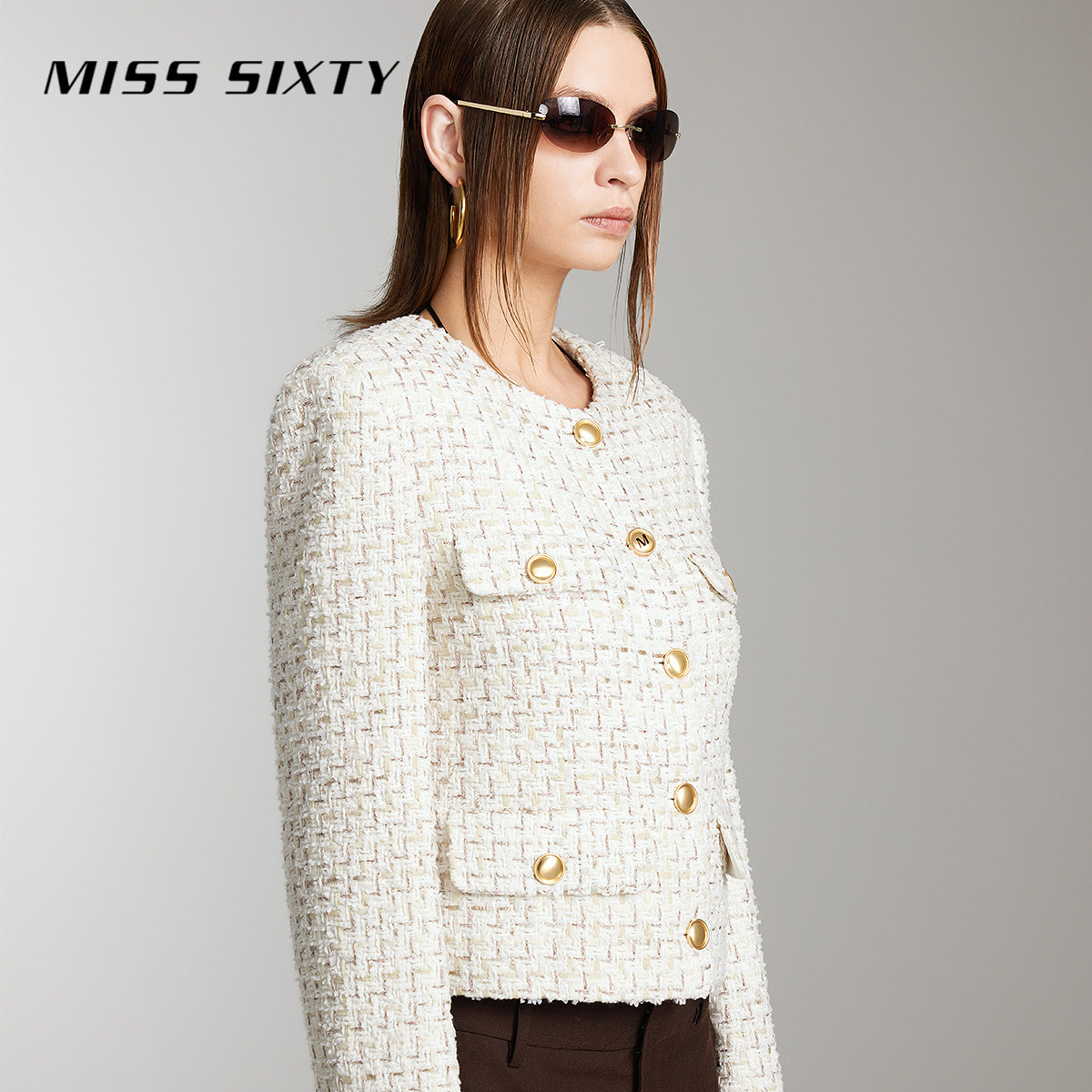 Miss Sixty小香风花式纱外套女奢雅气质圆领单排扣长袖通勤高级感