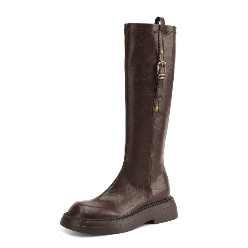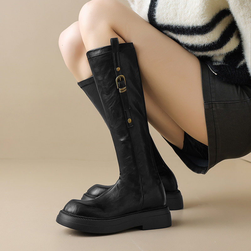 ladyblack厚底中跟高筒骑士靴女冬季后拉链3340直筒大码长靴41-43