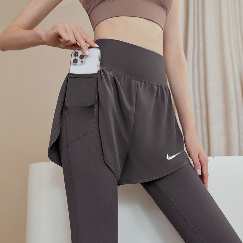 奥特莱斯假两件运动健身长裤女