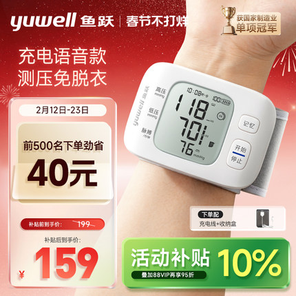 鱼跃充电腕式血压计便携免脱衣