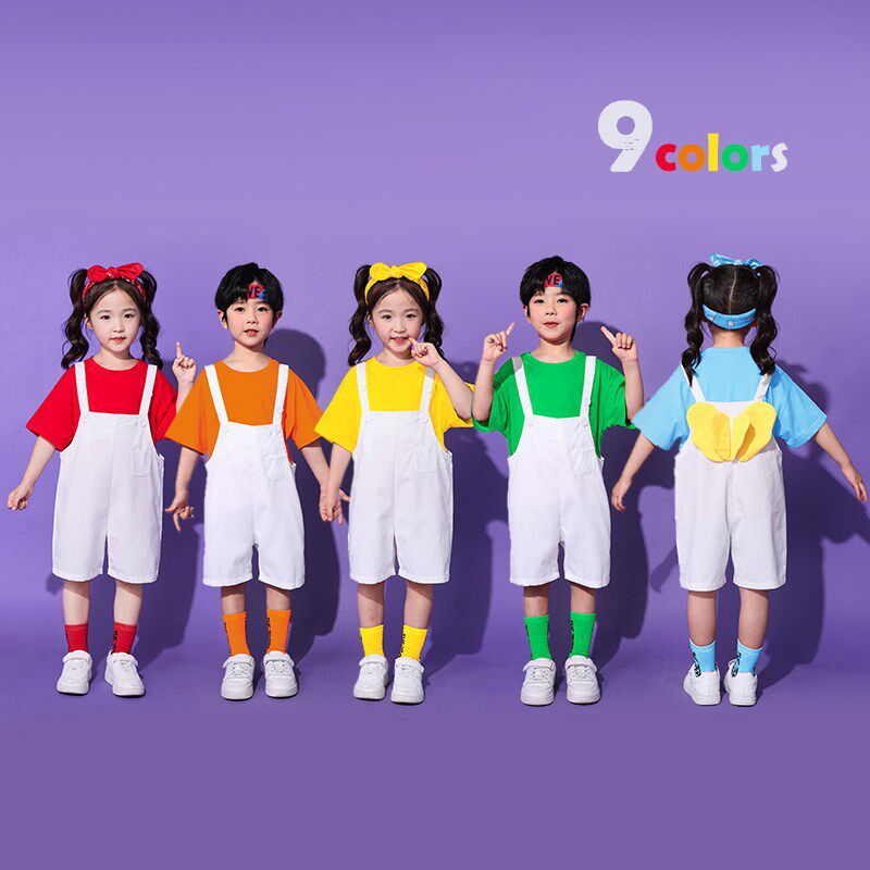 六一儿童幼儿园合唱舞蹈分体演出服毕业照班服小学生可爱背带裤夏