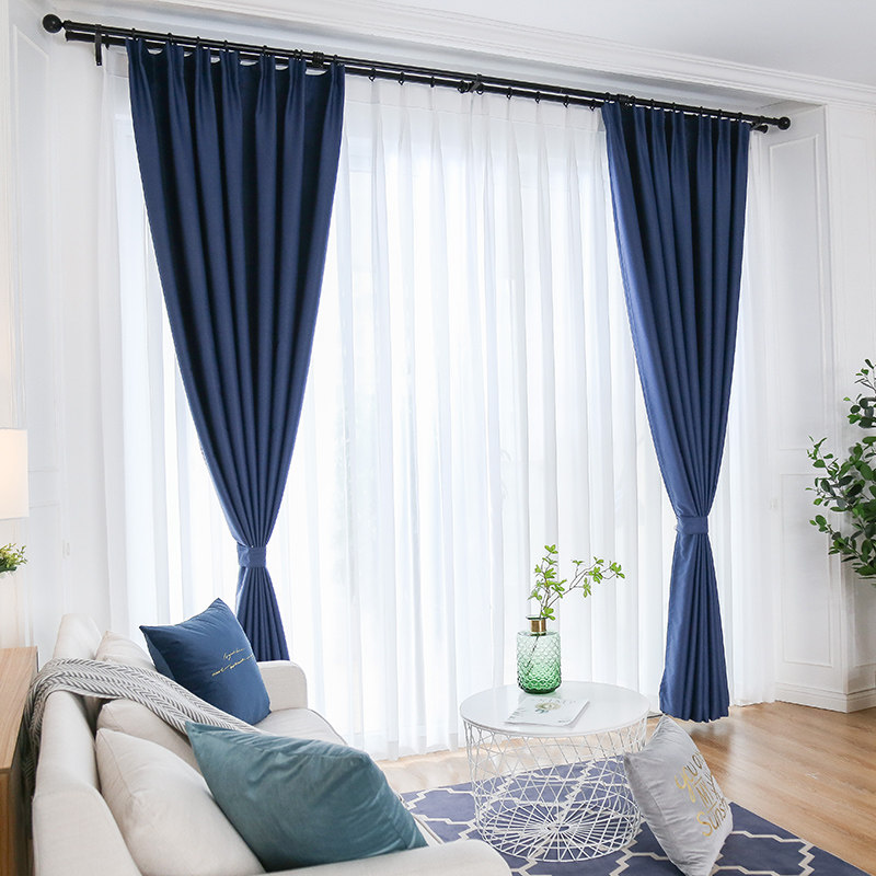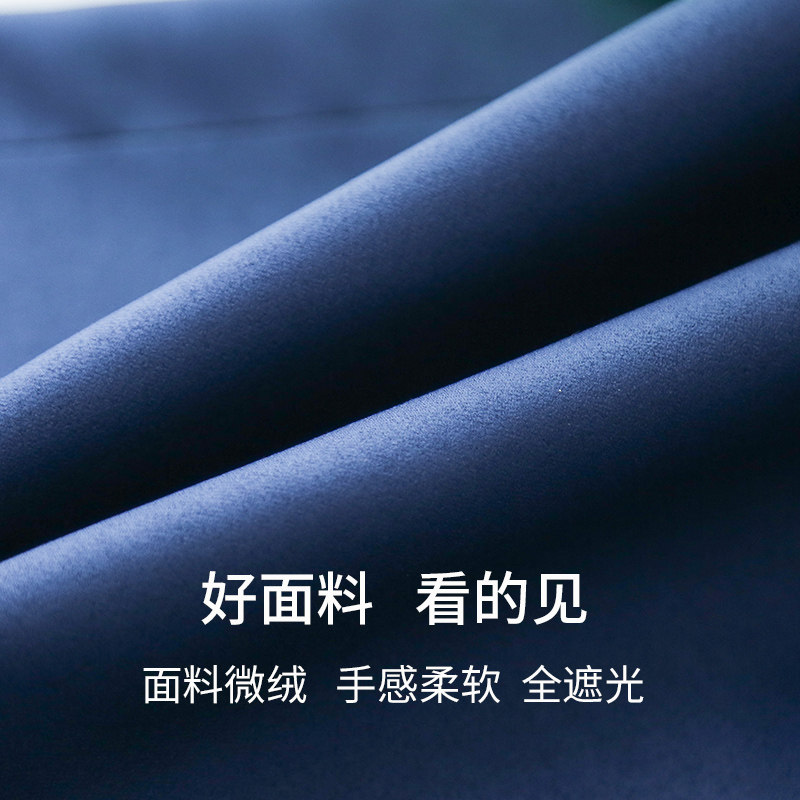 全遮光窗帘深蓝纯蓝色系北欧现代简约防晒不透光卧室飘窗睡眠窗帘