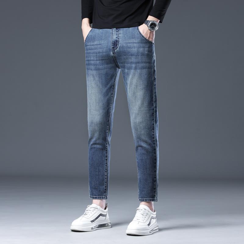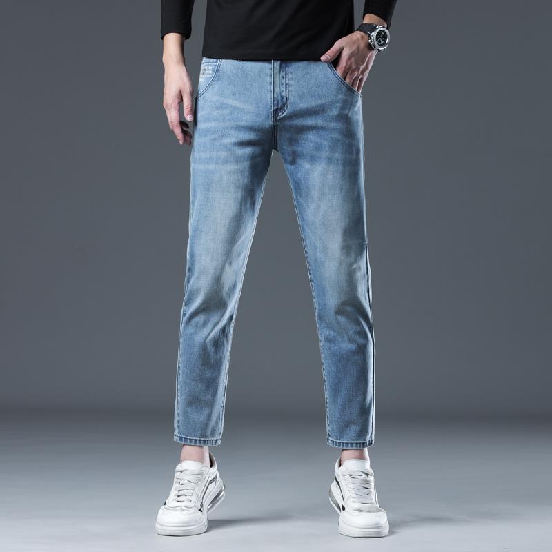 秋冬季新款男浅蓝色高端带款潮流弹修身小个子九分裤软牛仔1001n