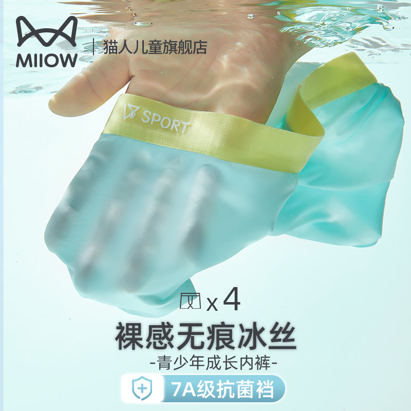 猫人儿童内裤冰丝男童夏季薄款平角裤中大童裤衩青少年裤头小男孩